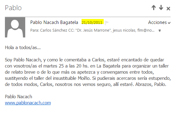 ¡Necropi@s del mundo! Aquí la imagen de un documento milenario encontrado por Marrone en los archivos perdidos del corazón de Mesopotamia que deja constancia del comienzo de nuestro querido Club de Lectura «Escribir es otra manera de leer» hace ya seis temporadas… ¡se dice pronto! Seguimos, seguimos, que la victoria es la lucha. Pablo.